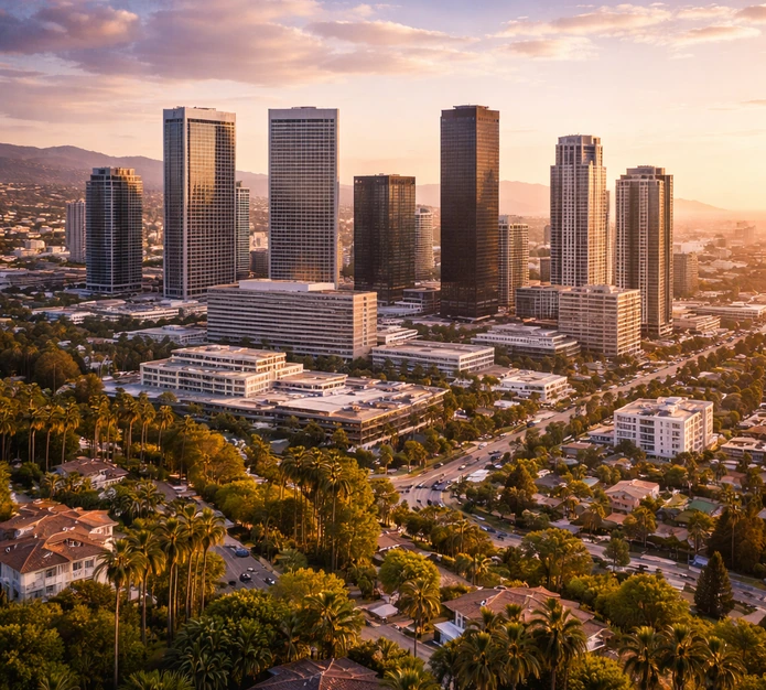 - Century City towers and residential buildings along Avenue of the Stars