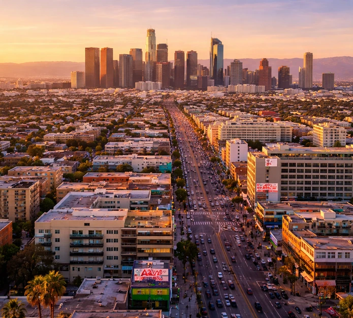 - Wilshire Boulevard, Olympic Boulevard, and 6th Street corridors