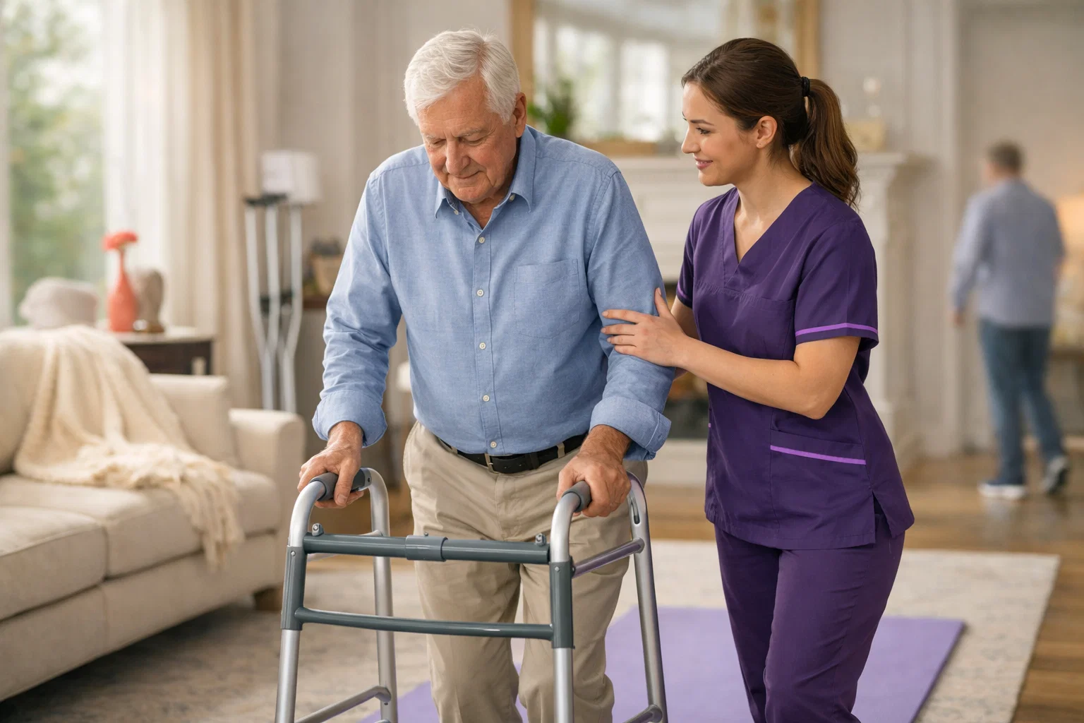 Family members providing care can benefit from caregiver training to learn safe transfer techniques, proper assistance methods, and how to support recovery without enabling dependency.