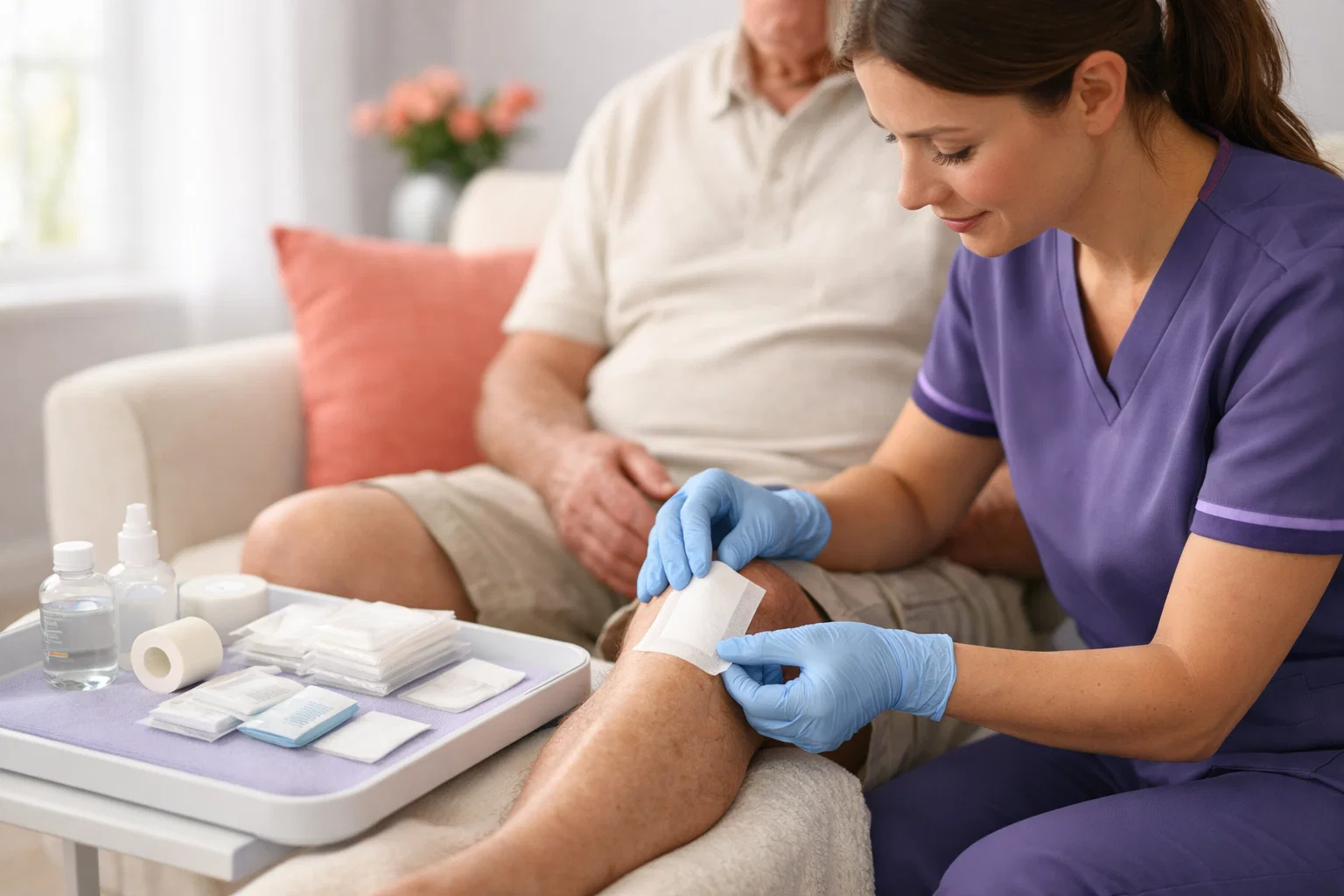 Some patients benefit from professional wound care following surgery.