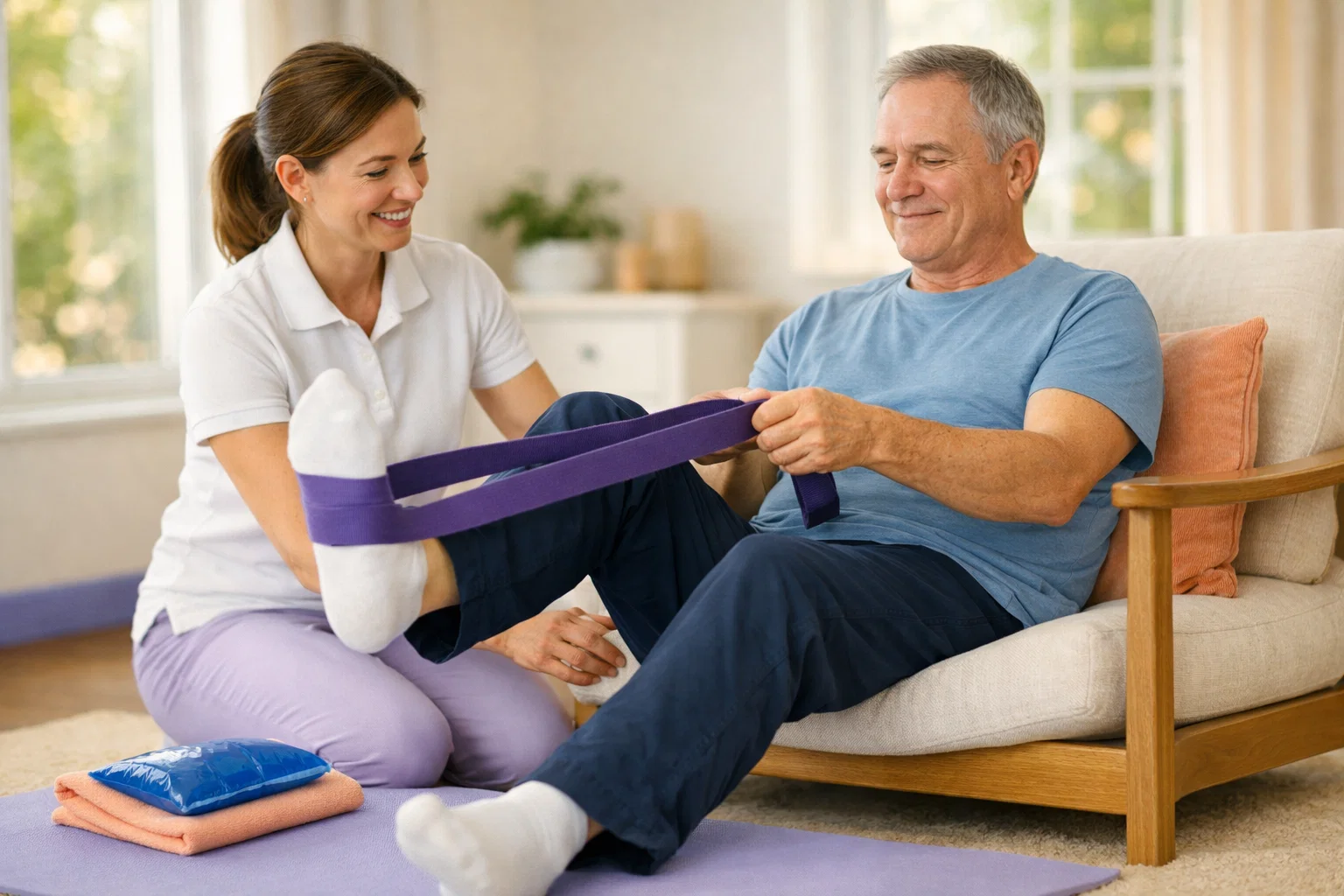 Knee replacement rehabilitation at home throughout Los Angeles County. Our licensed physical therapists provide post-surgical therapy including range of motion exercises, strengthening, gait training, and functional recovery in your home. Medicare accepted.